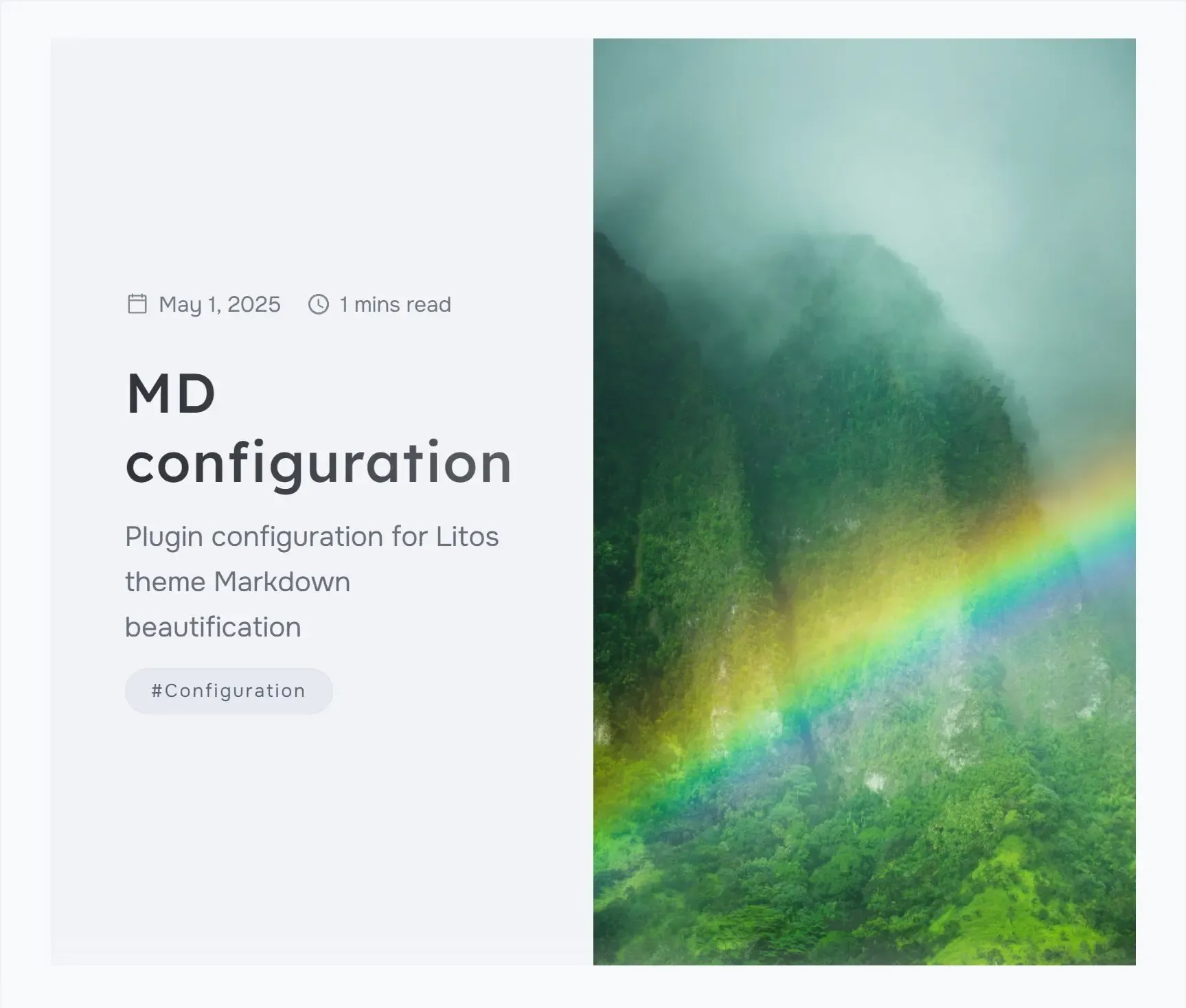 本主题不再根据图片存在与否或比例决定元信息显示样式,而是由您自行定义。可在config.ts中配置postType决定默认样式,在MD文档的front matter中可通过postType指定该MD文件的显示样式。